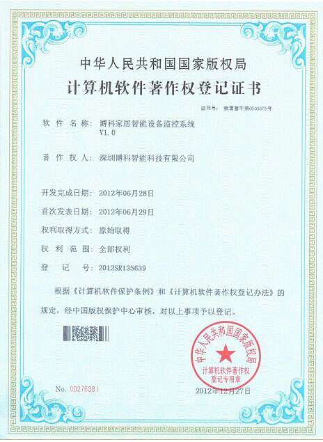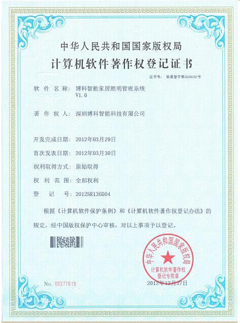 DJTY.COM大江体育智能家居照明管理系统证书