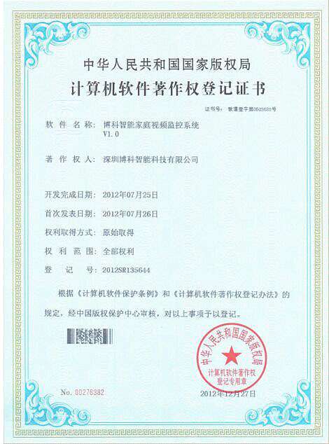 DJTY.COM大江体育智能家庭视频监控系统证书